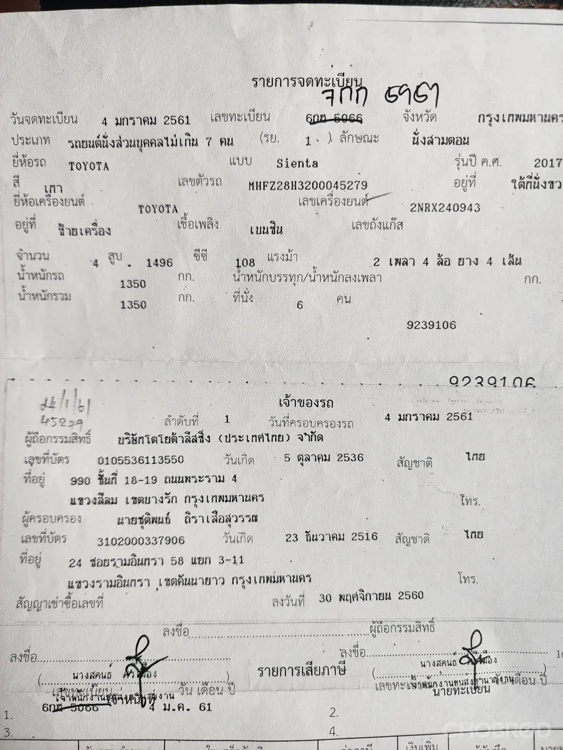 2018 Toyota Sienta 1.5 V สี S/M ราคา 389,000 บาท * เครื่อง Dual VVTI, เดรื่องยนต์ประหยัด ECO พร้อมระบบรองรับเชื่อเพลิง E20 * ประตูข้างสไลด์ไฟฟ้า 2 ฝั่งควบคุมได้ทั้งจากสวิตช์ในห้องโดยสารที่รีโมทคอนโทรล * เบาะหนังดำ/ส้ม 7 ที่นั่ง 3 แถว พับได้แบบ 50/50 หรือ 60/40, Isofix: จุดยึดสำหรับติดตั้งเบาะนั่งนิรภัยสำหรับเด็กเข้ากับตัวรถ * ถุงลมนิรภัย 3 ใบ, ABS ดิสก์ 4 ,ระบบควบคุมการทรงตัว VSC, ระบบป้องกันการลื่นไถล TRC * พวงมาลัยพาวเวอร์แบบมัลติฟังค์ชั่น, กุญแจรีโมทพร้อมกันขโมย IMMOBILIZER, ระบบเปิด-ปิดประตูอัจฉริยะ, ปุ่มกดสตาร์ท